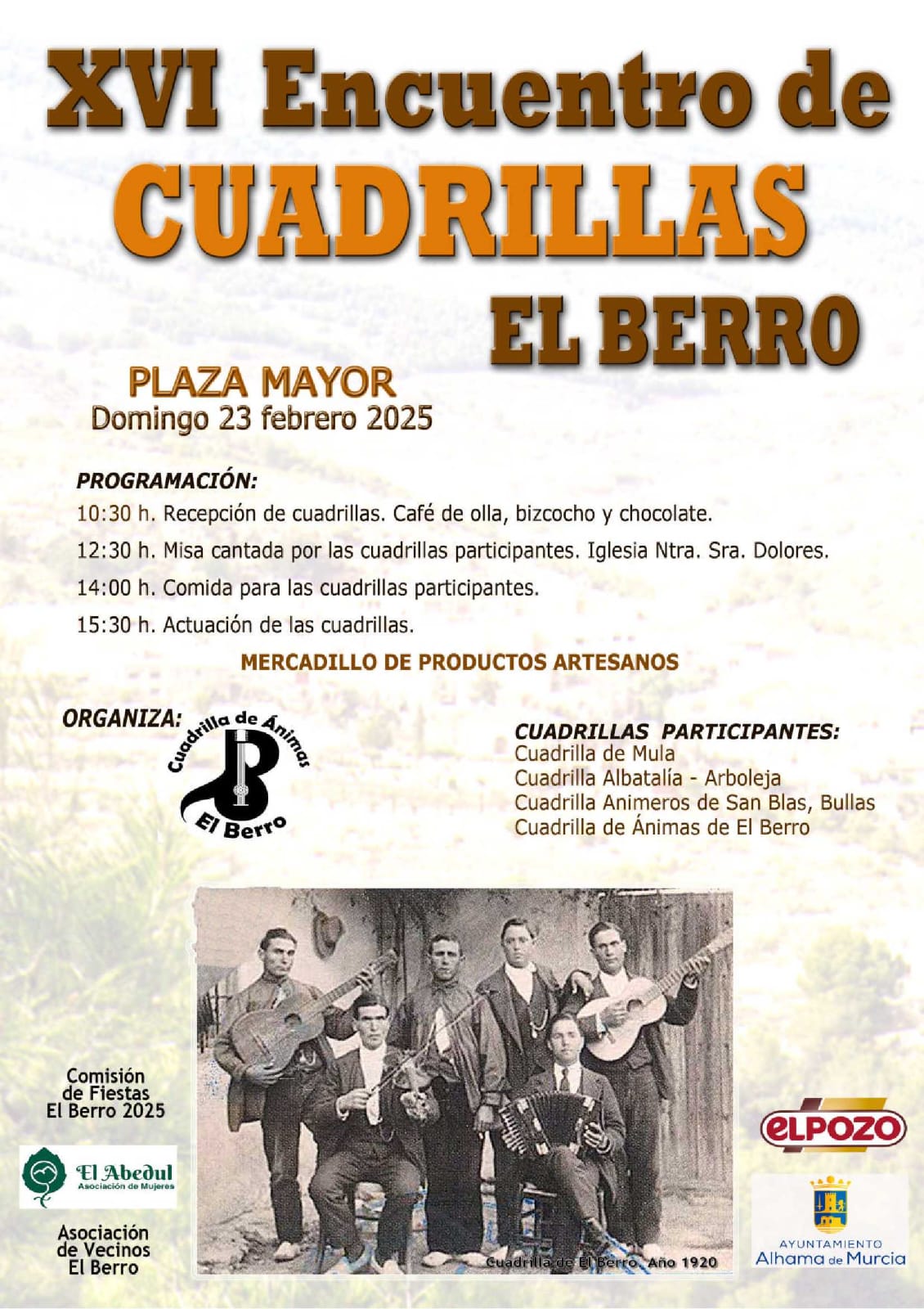 El encuentro contará con la participación de varias cuadrillas tradicionales, entre ellas la Cuadrilla de Mula, la Cuadrilla Albatalía-Arboleja, la Cuadrilla Animeros de San Blas de Bullas y la Cuadrilla de Ánimas de El Berro.