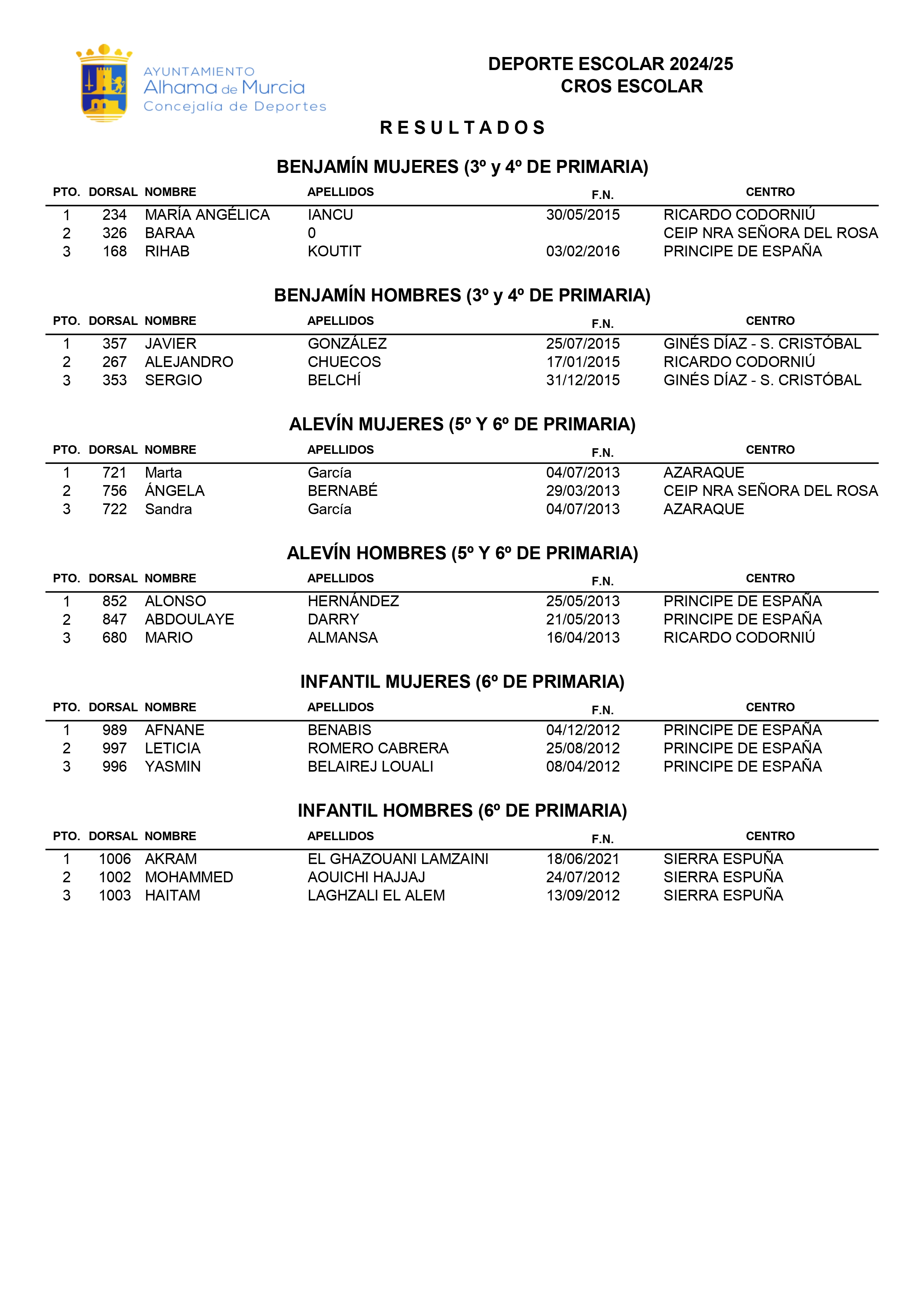 Benjamín Hombres (3º y 4º de Primaria)