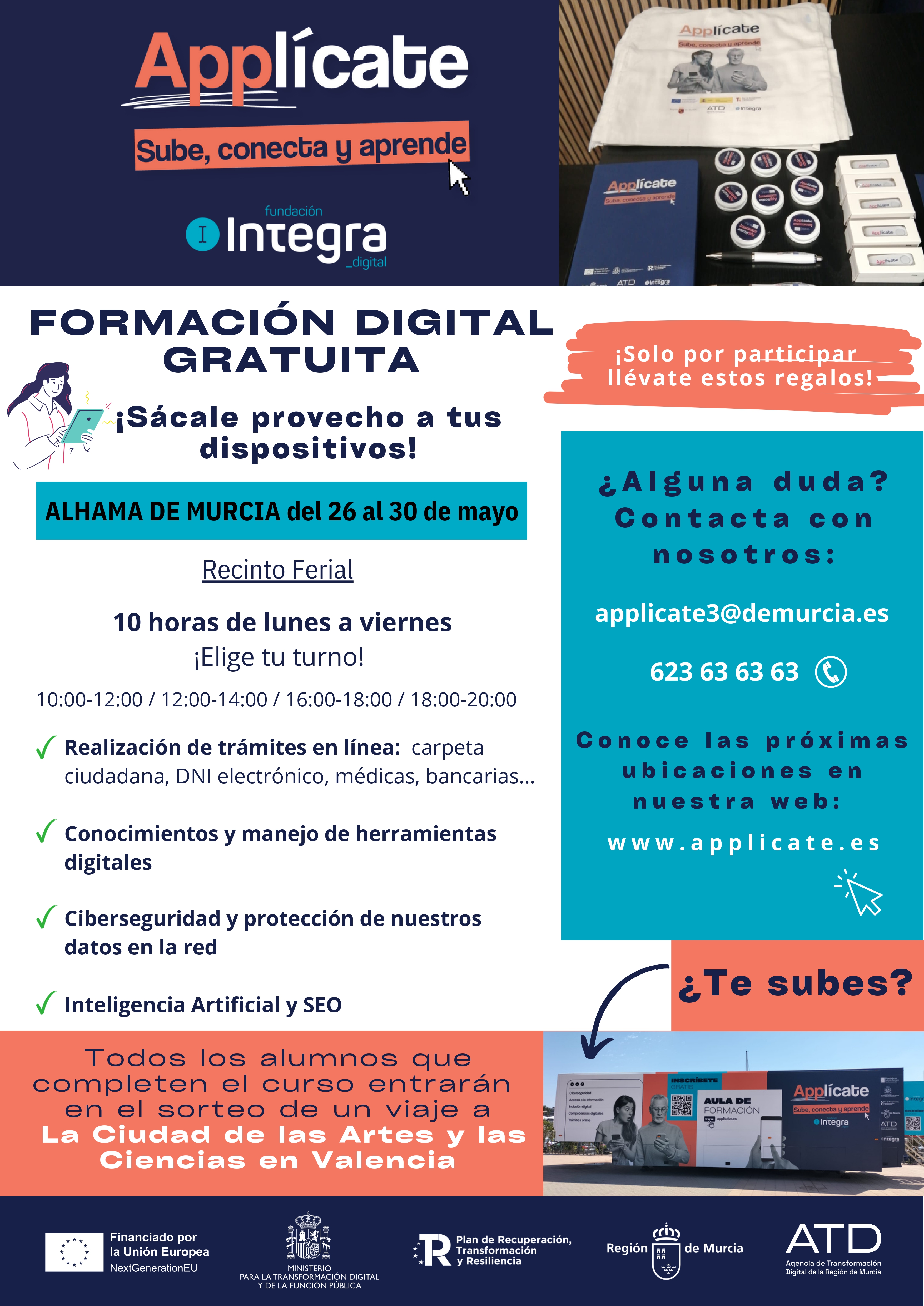 Los interesados pueden inscribirse llamando al teléfono 623636363 o enviando un correo a applicatemurcia@gmail.es. Para más información sobre futuras ubicaciones y contenidos de los cursos, pueden consultar la página web www.applicate.es.