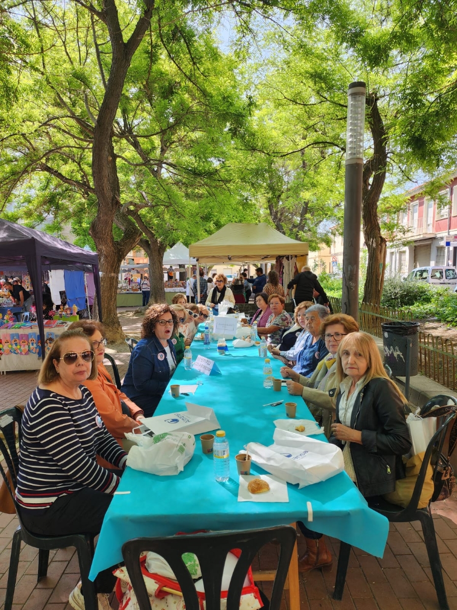 La Asociación Cultural San Lázaro de Alhama ha participado en el Encuentro Local de Encajes y Bolillos celebrado el domingo 18 de mayo en la Plaza Santiago Bernabéu de Almansa (Albacete), en el marco de las Fiestas del Barrio de San Isidro 2025.