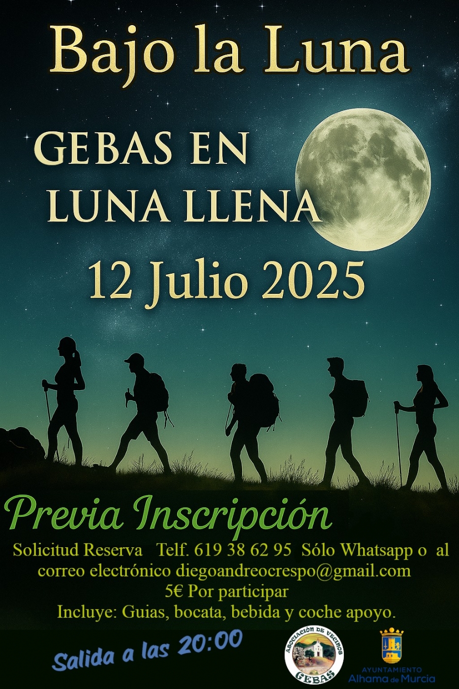 La ruta, organizada bajo el título "Bajo la Luna", y como adelanto de sus próximas fiestas con diferentes actividades planeadas para agosto, será celebrada el sábado 12 de julio y propone un recorrido nocturno por el entorno natural de Gebas. La salida está prevista a las 20:00 horas y, como en años anteriores, se espera una gran participación de vecinos/as y visitantes que deseen disfrutar del paisaje alhameño en una experiencia única.