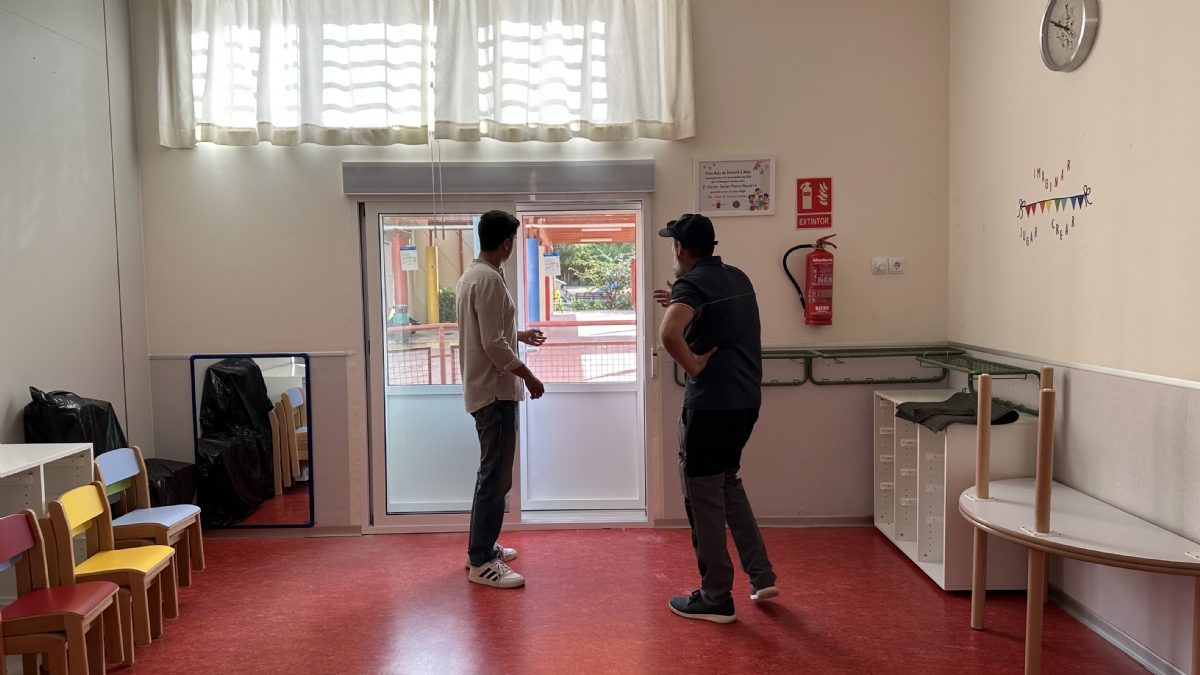 En el área de Infantil se ha actuado en el aula de dos años para mejorar la visibilidad hacia el baño contiguo y facilitar el acceso eliminando barreras físicas. En la zona de Primaria se ha reparado la malla metálica de protección, que presentaba deterioro por el uso.
