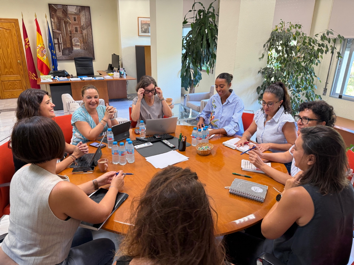 Este jueves, la alcaldesa Rosa Sánchez, acompañada de Nani Navarro, concejala de Bienestar Social, Eva María León, directora de Servicios Sociales del Ayuntamiento, Ana María Martínez, asesora laboral y responsable del Centro de Atención Psicosocial, María Belchi, coordinadora del Centro de Atención Temprana y trabajadora social, y Magdalena Carreño, coordinadora y responsable de los Centros de Día de Personas Mayores y Discapacidad, han mantenido una reunión con representantes del Instituto Murciano de Acción Social (IMAS), entre ellos Verónica López, directora gerente del IMAS, Miriam Pérez y Salvadora Titos, directora y subdirectora general de Personas con Discapacidad.