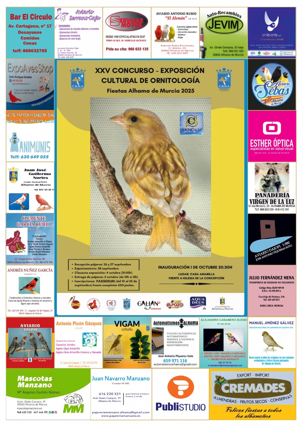 “Queremos invitar a toda la ciudadanía y a quienes nos visiten a contemplar la belleza y el colorido de estas aves, fruto de años de cría y dedicación. Agradecemos el apoyo del Ayuntamiento y de las firmas colaboradoras que hacen posible este encuentro” ha concluido el vicepresidente.