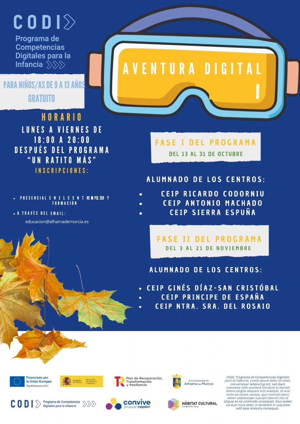 El CODI, financiado por los fondos europeos Next Generation en el marco del Plan de Recuperación, Transformación y Resiliencia del Gobierno de España, está dirigido a niños, niñas y adolescentes de 9 a 17 años. Ofrece más de 30 horas formativas por participante, con contenidos que incluyen navegación segura, identidad digital, producción creativa y empleabilidad juvenil.