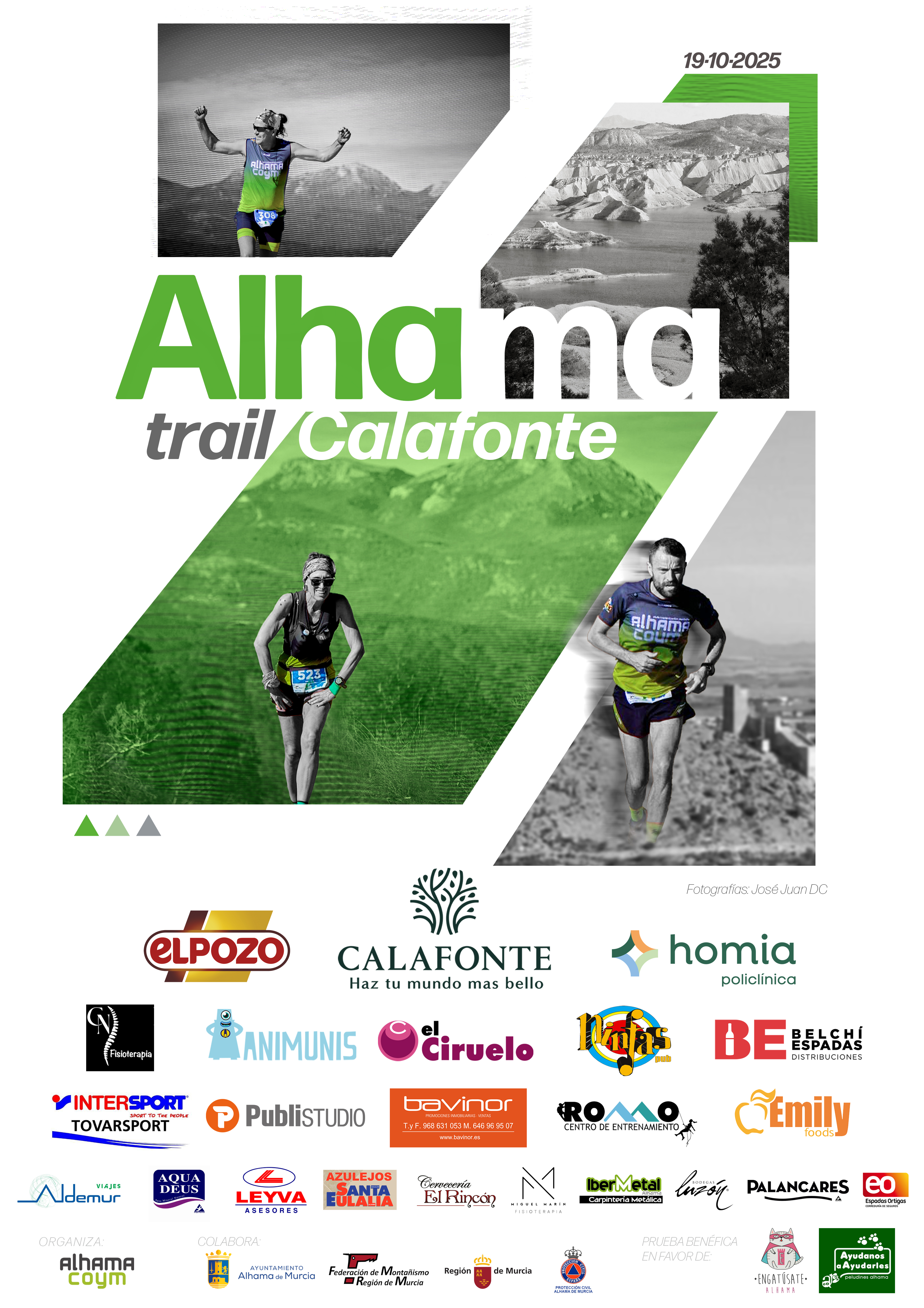 “El objetivo de esta prueba es, además de fomentar el deporte en la naturaleza, dar visibilidad y apoyo a asociaciones locales que realizan una gran labor social. Queremos también agradecer a nuestros patrocinadores, a Calafonte como patrocinador principal, y al Ayuntamiento de Alhama, Policía Local y Protección Civil por su colaboración para que esta carrera pueda celebrarse con todas las garantías de seguridad”, ha señalado Martínez.