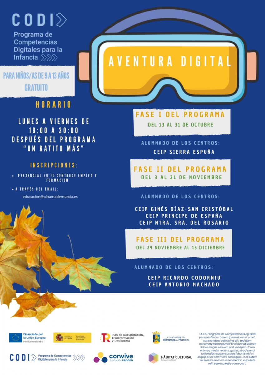 El CODI, financiado por los fondos europeos Next Generation en el marco del Plan de Recuperación, Transformación y Resiliencia del Gobierno de España, está dirigido a niños, niñas y adolescentes de 9 a 17 años. Ofrece más de 30 horas formativas por participante, con contenidos que incluyen navegación segura, identidad digital, producción creativa y empleabilidad juvenil.