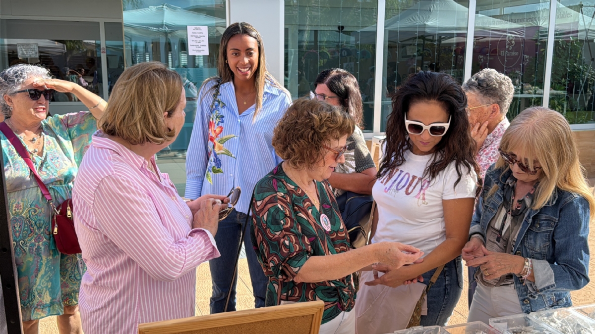 En el exterior del jardín donde se desarrolló la actividad se instalaron puestos especializados con materiales y utensilios destinados a la práctica de estas técnicas artesanales, como hilos, patrones, abanicos y distintos accesorios empleados en la confección de prendas y piezas decorativas.