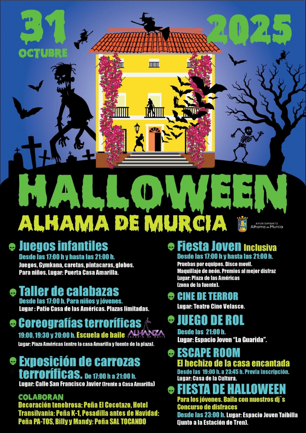 “Queremos que Halloween sea una jornada divertida, segura y participativa para todos los alhameños. Hemos preparado actividades para todas las edades y esperamos que la gente salga a disfrutar del ambiente y del trabajo que muchas asociaciones y peñas han puesto en esta edición”, ha señalado Antonio Espinosa, concejal de Juventud del Ayuntamiento de Alhama de Murcia.