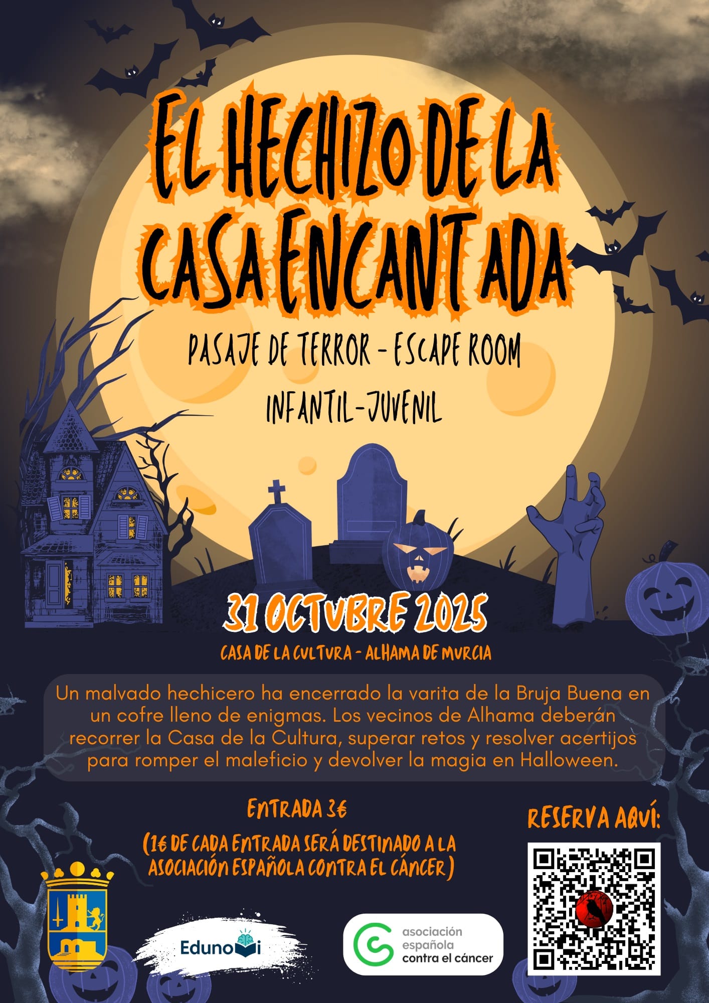 Mientras que en la Casa de la Cultura se podrá disfrutar del escape room “El hechizo de la casa encantada”, disponible de 19:00 a 23:45 horas. La participación requiere inscripción previa mediante un código QR.