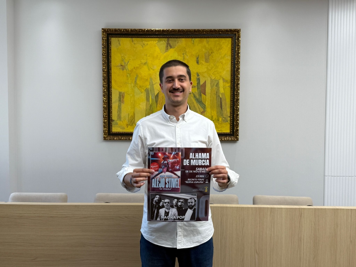 El concejal de Festejos, Antonio García, ha presentado esta mañana la nueva fecha para la celebración de los conciertos que tuvieron que ser aplazados debido a las intensas lluvias registradas durante la pasada Feria de Alhama de Murcia.