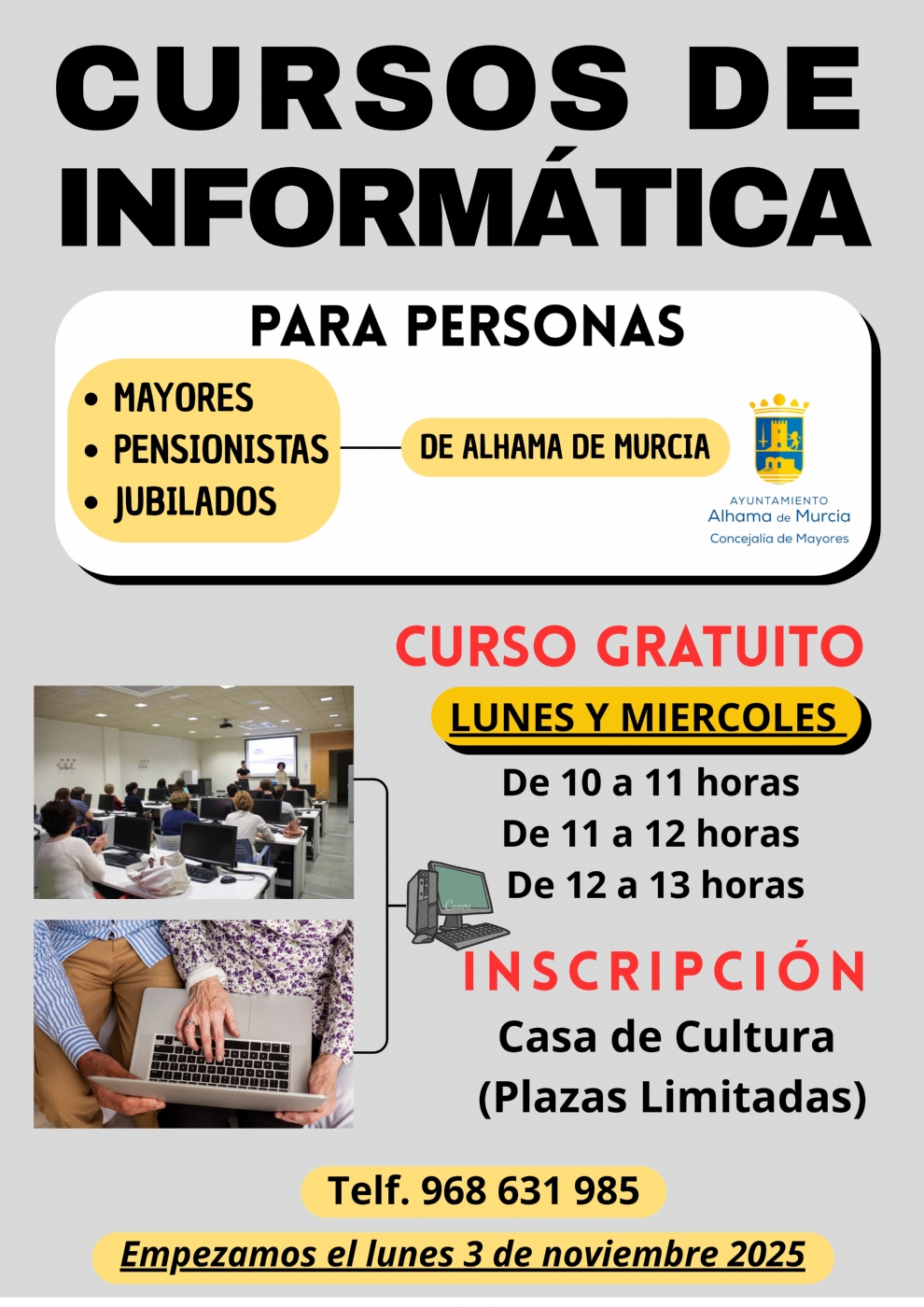 El curso dará comienzo el próximo lunes 3 de noviembre de 2025, y las inscripciones ya pueden realizarse en la Casa de Cultura. Las plazas son limitadas por lo que es necesaria inscripción previa.