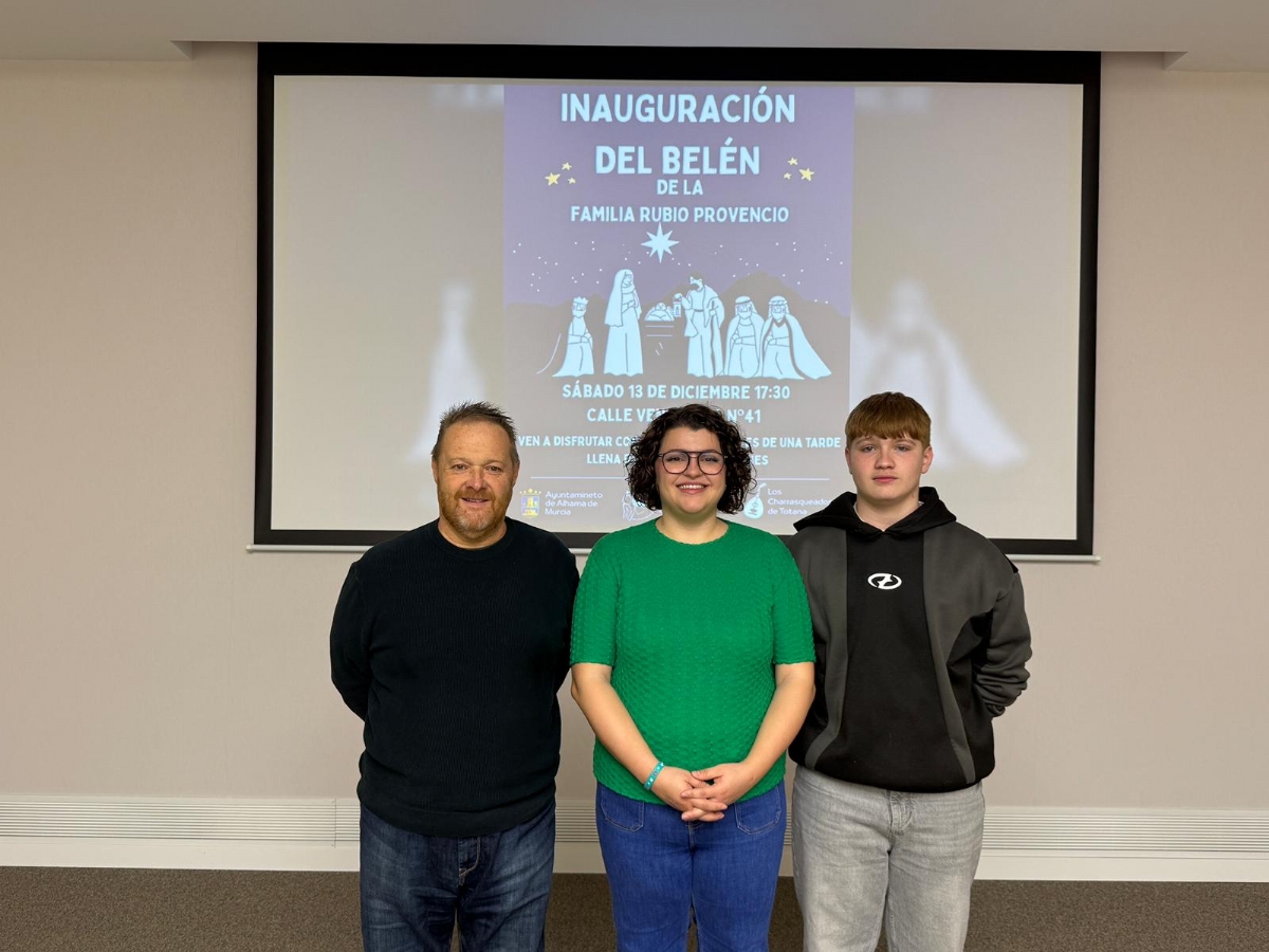 Esta mañana, la concejala de Cultura y Patrimonio, acompañada por Ginés Rubio y Alejandro Rubio, han presentado la inauguración del tradicional Belén familiar de la Familia Rubio Provencio, una cita ya esperada en estas fechas y que, un año más, abre sus puertas a toda la ciudadanía.