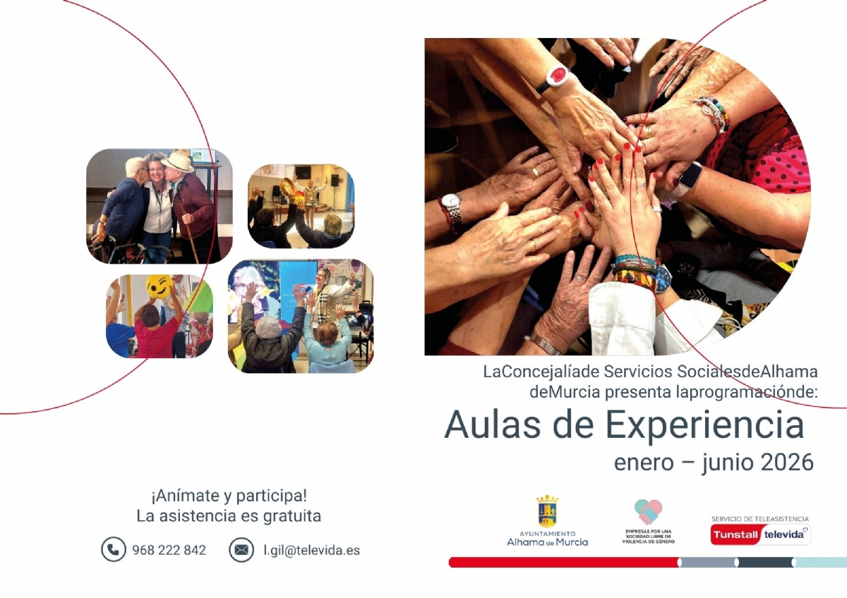 El Ayuntamiento, a través de la concejalía de Servicios Sociales, anuncia la programación de las Aulas de Experiencia, una iniciativa gratuita que se desarrollará entre enero y junio de 2026 y que tiene como objetivo promover un envejecimiento activo, saludable y participativo entre las personas mayores del municipio.