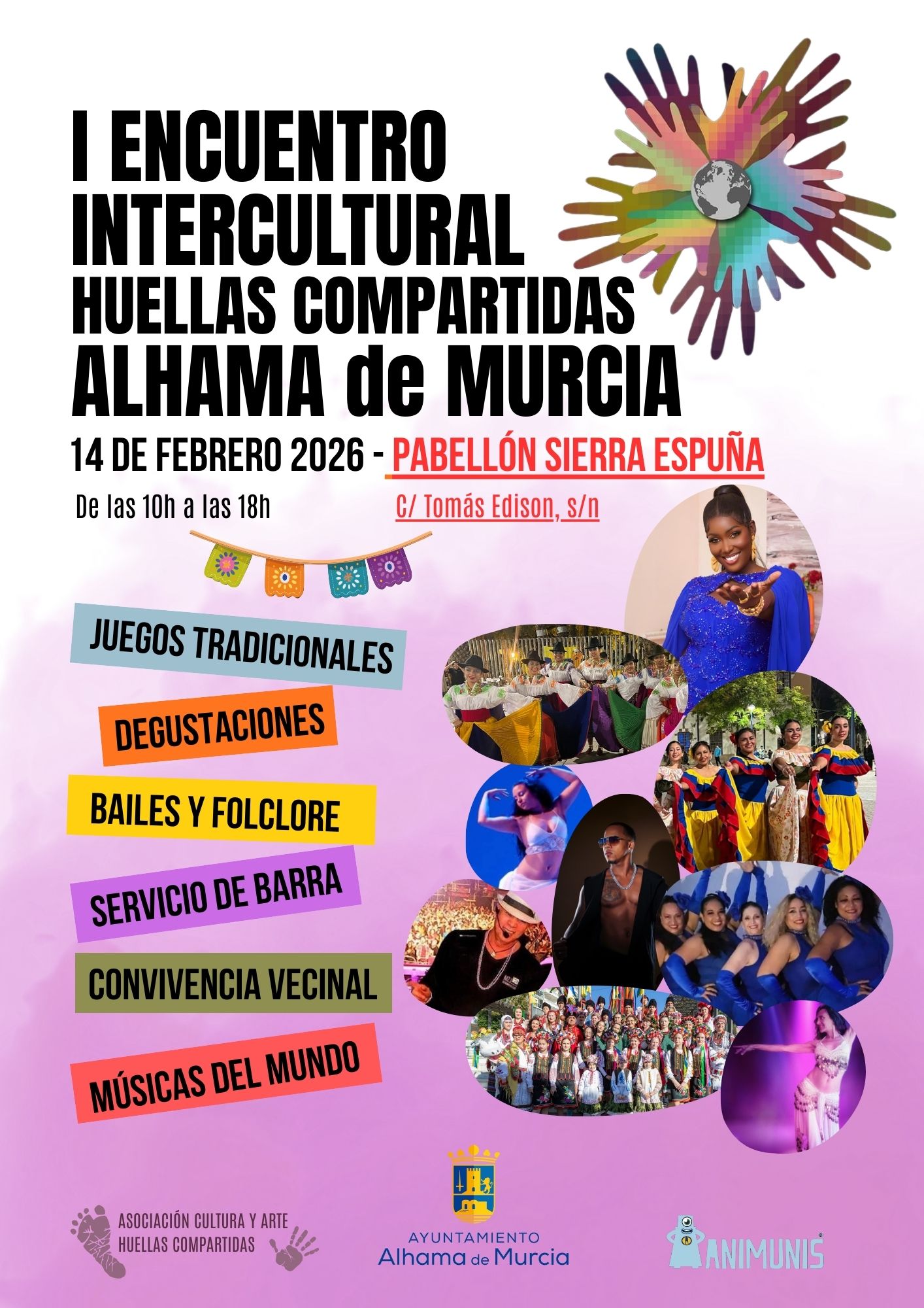 El municipio celebrará el próximo 14 de febrero una jornada dedicada a la diversidad y al intercambio cultural con motivo del I Encuentro Intercultural Huellas Compartidas, una iniciativa pionera que reunirá música, gastronomía y tradiciones de diferentes culturas en el recinto ferial de Alhama de Murcia, en horario de 10:00 a 18:00 horas.