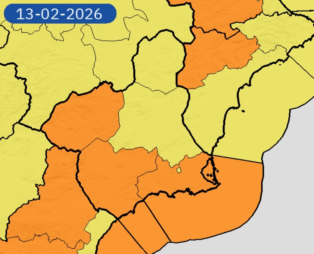 Según la previsión meteorológica, se esperan rachas máximas de hasta 90 kilómetros por hora, de componente oeste, entre las 12:00 horas del viernes y las 00:00 horas del sábado 14 de febrero, con una probabilidad estimada entre el 40% y el 70%, dentro del ámbito del Valle del Guadalentín.