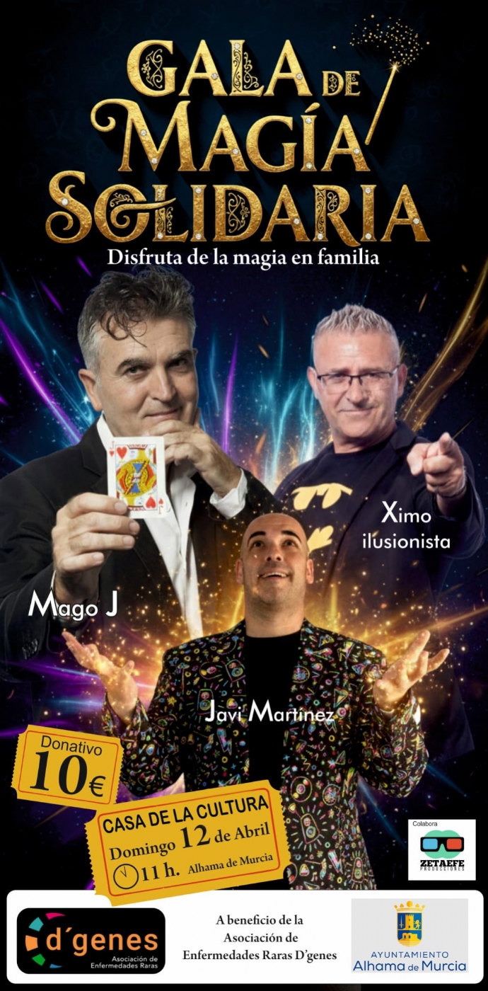 La Casa de la Cultura será el escenario el próximo 12 de abril a las 11:00 horas de la Gala de Magia Solidaria, un espectáculo familiar cuya recaudación irá destinada a apoyar la labor de la Asociación de Enfermedades Raras D’Genes.