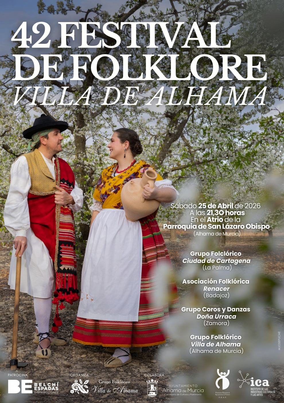 El 42º Festival Nacional de Folklore Villa de Alhama volverá a convertir a la localidad en punto de encuentro de la música y las tradiciones populares el próximo sábado 25 de abril, a las 21:30 horas, en el atrio de la Parroquia de San Lázaro Obispo. La cita, consolidada como uno de los actos culturales más emblemáticos del programa de Los Mayos, reunirá a formaciones llegadas desde distintos puntos de España junto al grupo anfitrión.