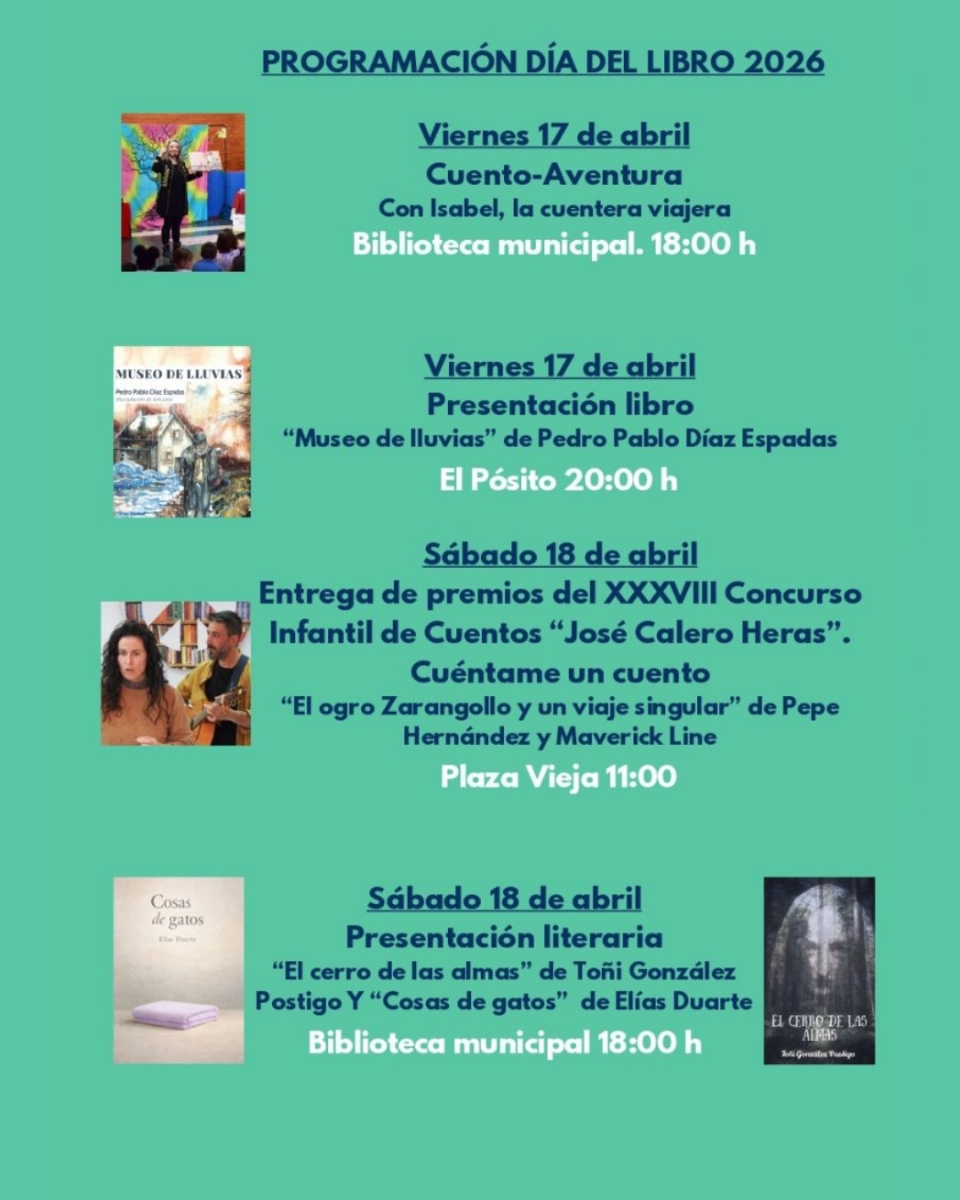 Entre las actividades destaca “Libros en la calle”, una iniciativa que permitirá disfrutar de relatos de Pedro Pablo Díaz Espadas en diferentes puntos del municipio, reforzando el carácter participativo de esta edición.